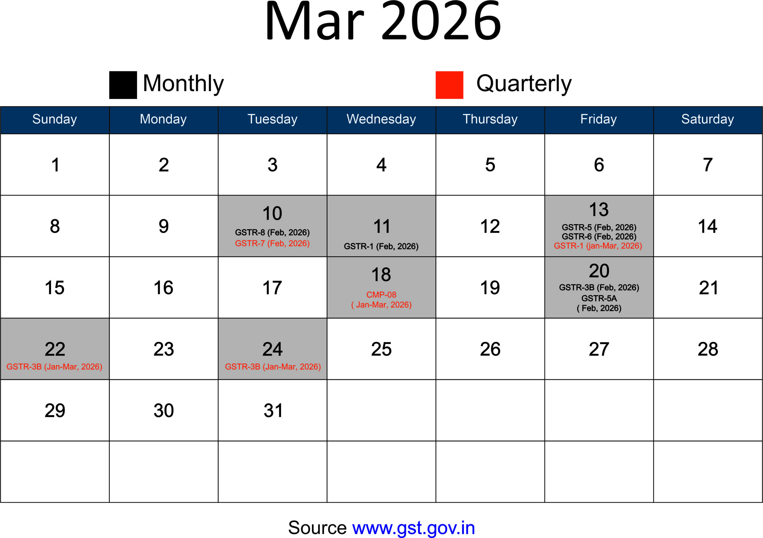 • GST Calendar